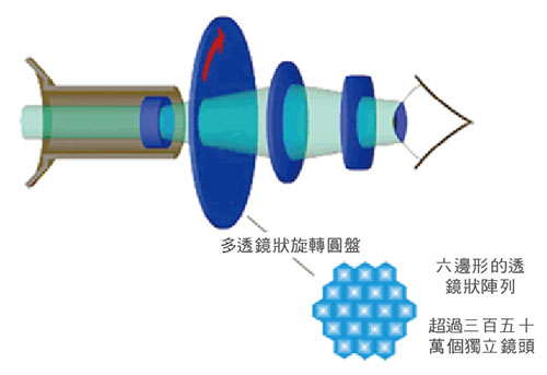 擴寬的光學成像能有更大程度的頭部活動範圍、減輕了眼睛疲勞,此外還讓使用者雙眼與目鏡之間的距離拉開原來的四倍。對使用高倍率放大的使用者來說,擴大光瞳的成像提供對光場外部的更加舒適觀察。 |